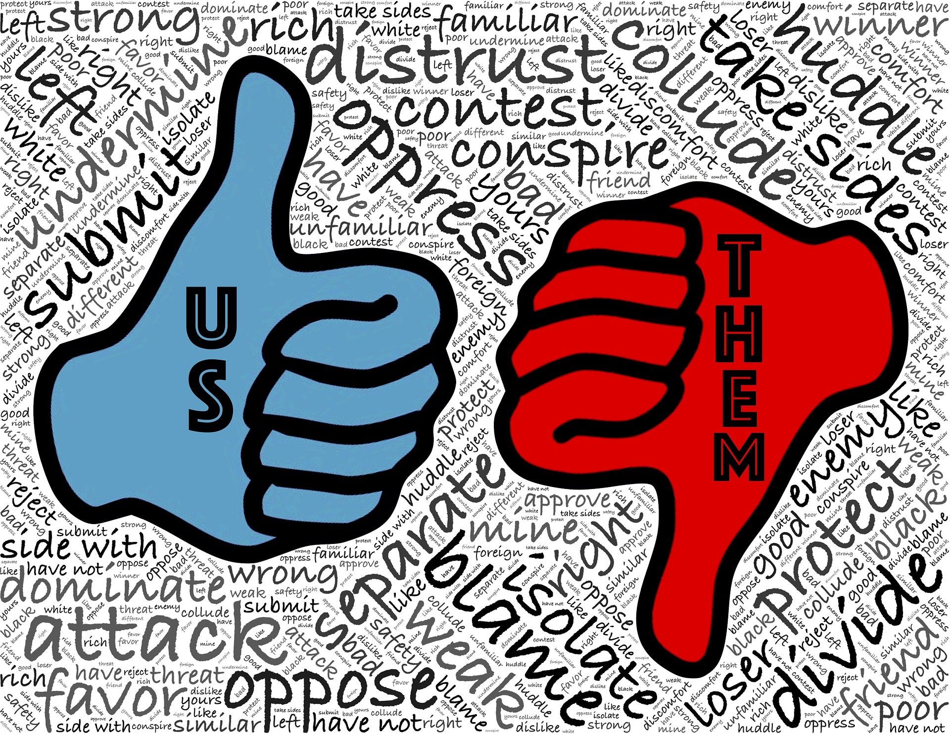 The real issue is, we have gotten together in separate groups, which are no more than extensions of a separate defined ‘self’, so there is an “Us and Them” perspective functioning between groups. This has served us well to a point, until these groups clash because they appear as separate.